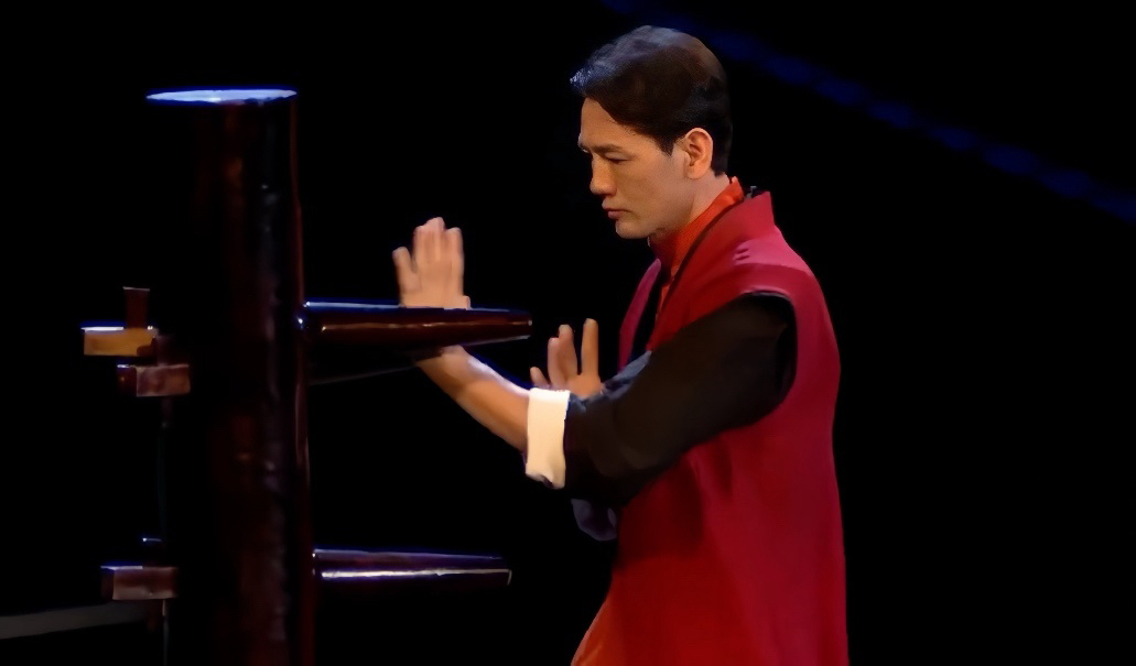 开幕式文体展演第二章《同心同缘》,以岭南文化为根脉,融武术、粤剧、南狮等非遗瑰宝与现代艺术于一体。舞台中央,佛山武术名家董崇华一套行云流水的咏春拳,刚柔并济,招招有力。“日字冲拳、摊打、膀手……”一招一式,尽显岭南武术的沉实与气度。作为咏春宗师叶问长子叶准的亲传弟子,董崇华是名副其实的叶问咏春第二代传人。